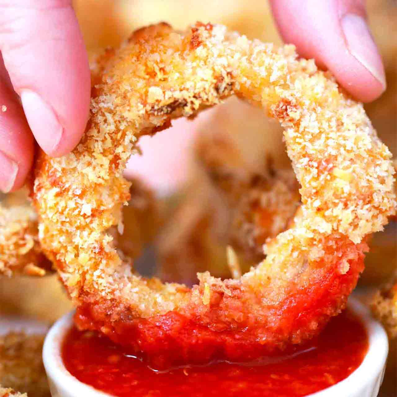 No need to trouble yourself worrying about the fats and calories from deep frying. These air fryer onion rings start off with sweet onions, are breaded and air fried, then served with a quick french fry dip. How many carbs are in onion. I place these onion rings on a rack over a cookie sheet and they cook just as if they were fried in a deep fryer without the oil. I used one half bag of ore ida onion ringers, but this fryer can hold one bag or more.